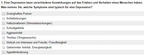 Bei der zweiten Frage, die Sie ebenfalls unter diesem Pretest-Link einsehen können, habe ich einen Umbruch gemacht. Es wäre optisch schöner, wenn der auch bei der ersten Frage mit drin wäre, d.h. wenn bei "Was meinen Sie, welche Symptome ..." eine neue Zeile beginnt.