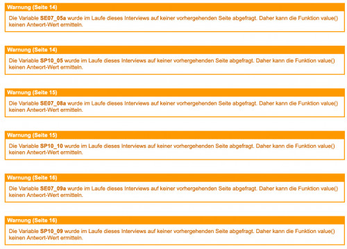 Es werden zwar alle Seiten übersprungen, die ich überspringen möchte, doch tauchen im Test immer folgende Warnungen für jene Skalen/Items auf: