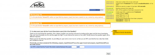 What I want to add before the question: "Previously, you have answered the following: %input:brand1% as the upper bound and %input:brand2% as the lower bound." - This sentence I would like to add either in "Anweisungen" or "Vorspann zu den Items" would this be possible?