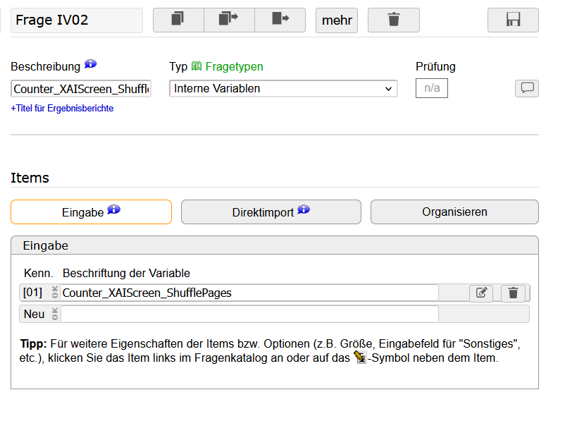 My code works, but only when I insert my variable ‘IV02_01’ using PHP code, not when I drag my ‘internal variable’ block onto the same page in my questionnaire. When I use the block, my data set always saves a ‘0’, while the PHP code saves the correct number of clicks. What am I missing?