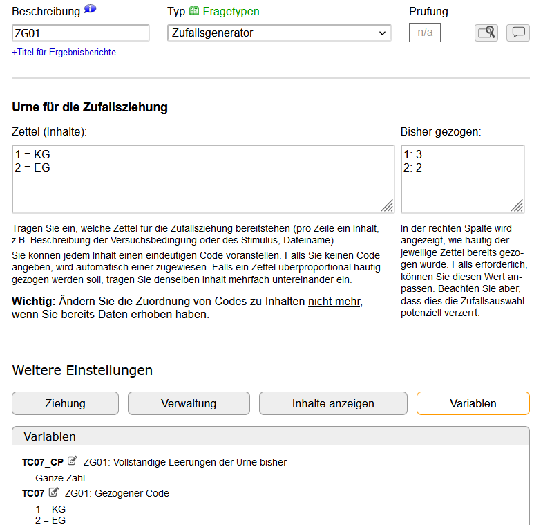 1. Die Variable ZG01 gibt es in diesem Projekt nicht (siehe Variablen-Übersicht). Daher kann kein Antwort-Wert dafür ermittelt werden.