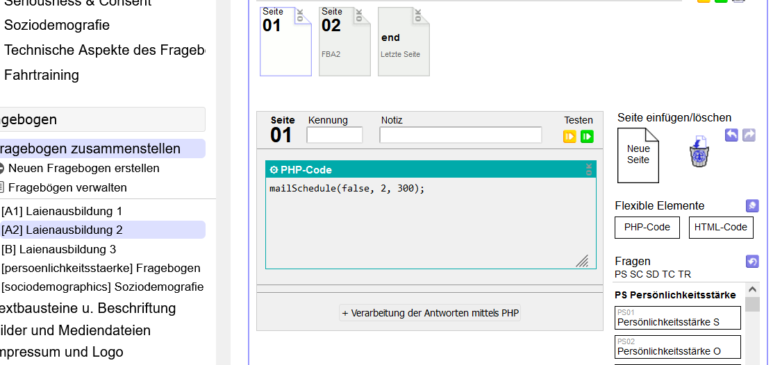 Hinweis: Wenn ich mich nicht Irre steht bei dem ersten Link dass bei Serienmail 1 der Fragebogen A2 verlinkt werden soll, es steht aber nicht explizit was mit Serienmail 2 geschehen soll. Ich habe da jetzt Fragebogen B verlinkt.
