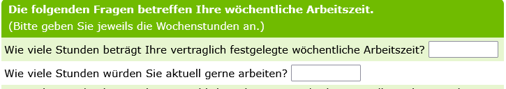 ich möchte, dass die Befragten ihre aktuelle Arbeitszeit eingeben und ihre Wunscharbeitszeit.