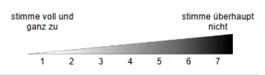 Ich habe ein Porblem mit meinem Fragebogen. Meine Skala ist eine klassische 7-stufige Likert-Skala mit Visuelle Unterstützung, dabei gilt: 1 (Stimme überhaupt nicht zu) und 7 (Stimme voll und ganz zu). Vor ca. 3h hatte ich eine Befragung, vor ca. 1h ging mein ganzer Fragebogen nicht, aber jetzt läuft alles.