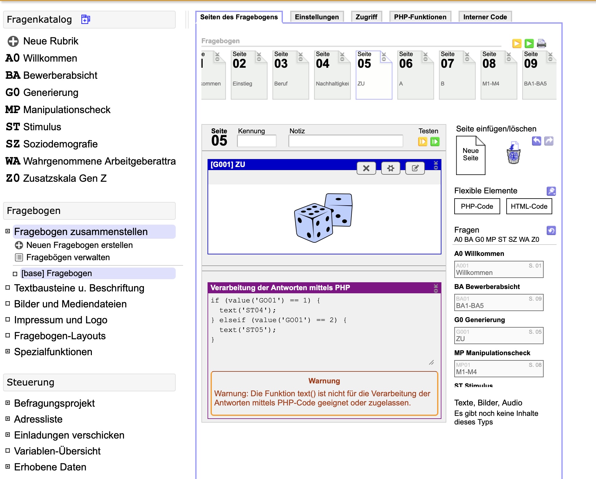 und da die alles eresetze mit den Bezeichnungen aus meiner Umfrage bekomme ich folgende Fehlermeldung: Warnung: Die Funktion text() ist nicht für die Verarbeitung der Antworten mittels PHP-Code geeignet oder zugelassen.