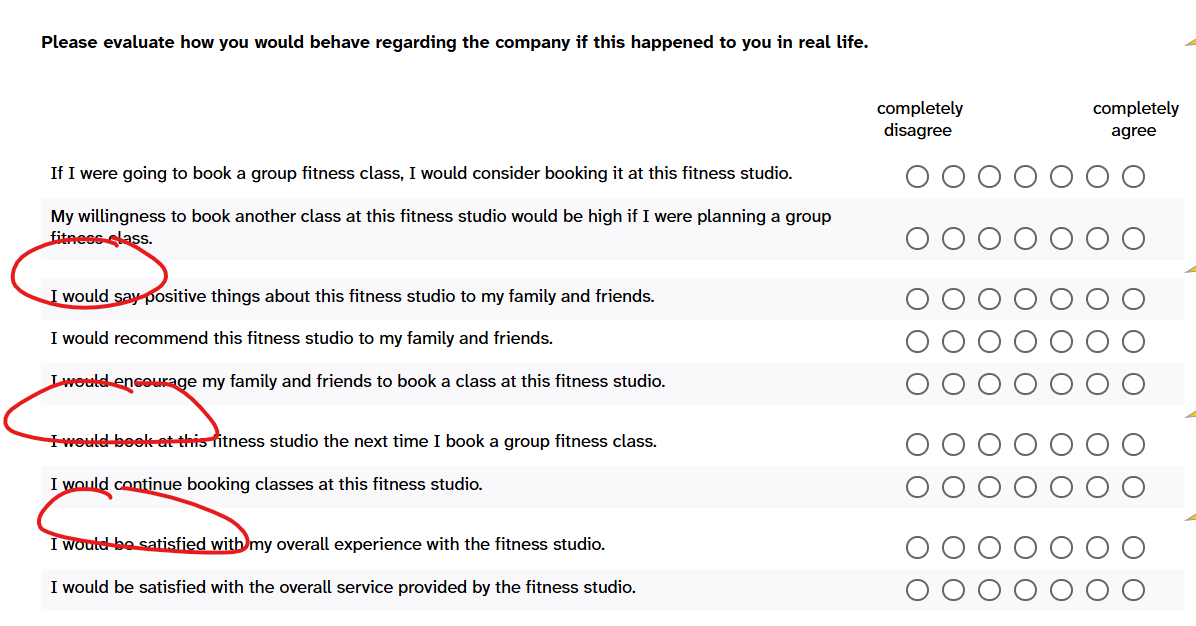 Ich habe auf einer Seite mehrere Variablen bestehend aus mehreren Items. Ich habe die Frageblöcke aneinandergereiht, Einleitung und Skalenbeschriftung entfernt und den Abstand zwischen den Fragen auf "no spacing" gesetzt, trotzdem erscheint ein Abstand: